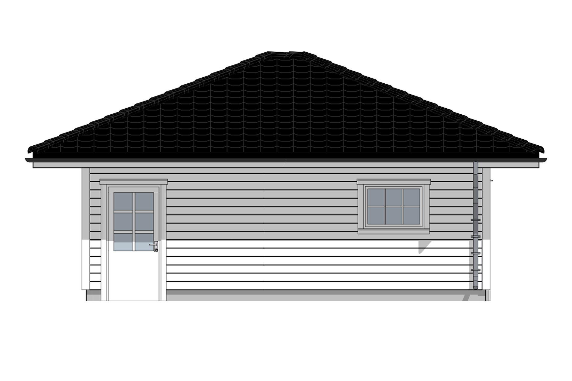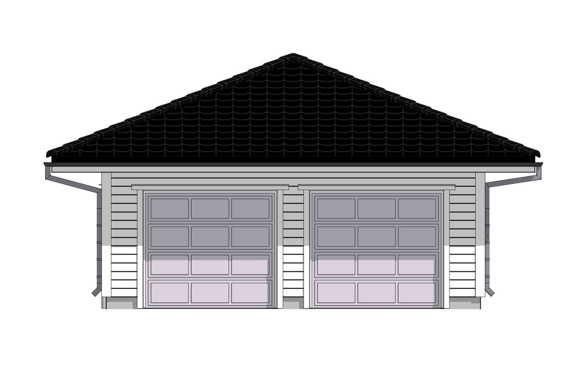 Med doble garasjeporter og valmet tak, er dette en garasje for deg som ønsker et bygg med herskapelig uttrykk ved boligen din. Med sine nesten 45m2 har denne garasjen både plass til to personbiler, og alt annet du måtte ønske å lagre i garasjen.
