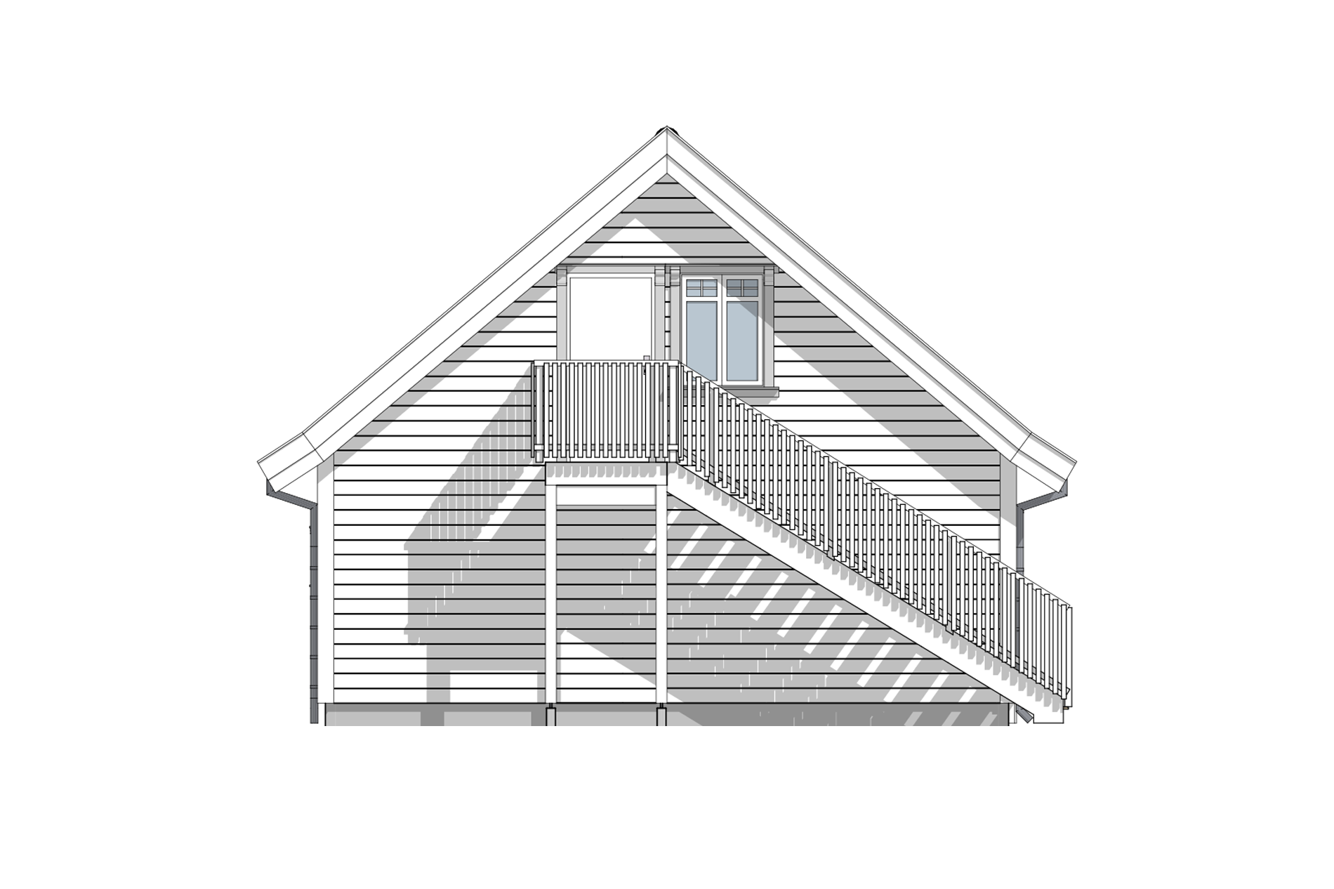 En utendørs trapp tar deg opp til garasjeloftet. En praktisk stue/lagerrom hvor ungdommene kan ha det hyggelig sammen, eller som du kan benytte som hobbyrom eller lager.